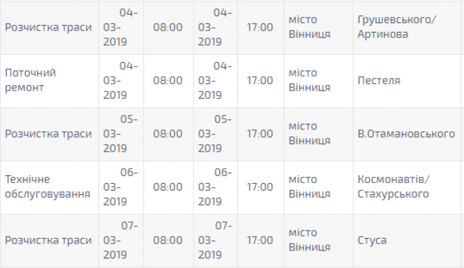 У «Вінницяобленерго» протягом 4-10 березня мешканці декількох вулиць сидітимуть без світла з 8 до 17:00. Так, на наступному тижні знеструмлять наступні вулиці: