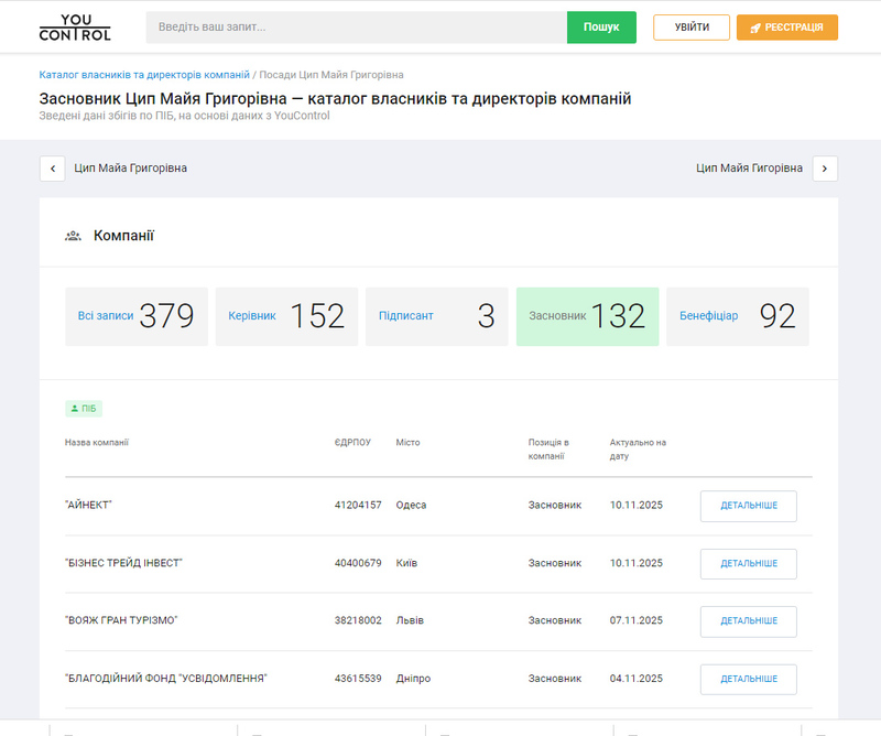 Можна припустити, що бізнес-імперія Майї Цип – несправжня. Компанії на неї "переписують", щоб ухилитися від відповідальності або перевірок. Також з перерахованих фактів стає зрозуміло, що до послуг Майї та їй подібних "фунтів" звертаються абсолютно різні підприємці.