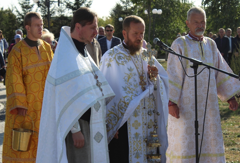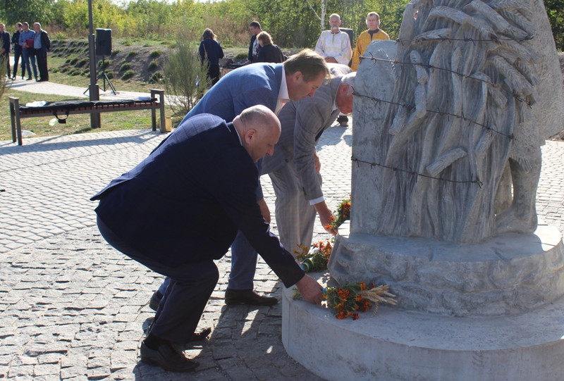 Як повідомили у відділі інформаційної діяльності та комунікацій із громадськістю Хмільницької міськради, чин освячення скульптури меморіального комплексу та поминальну молитву звершив благочинний Хмільницького благочиння Православної Церкви України протоієрей Іван Пукас. А на завершення поминальної молитви була оголошена хвилина мовчання за жертвами голодомору і політичних репресій.