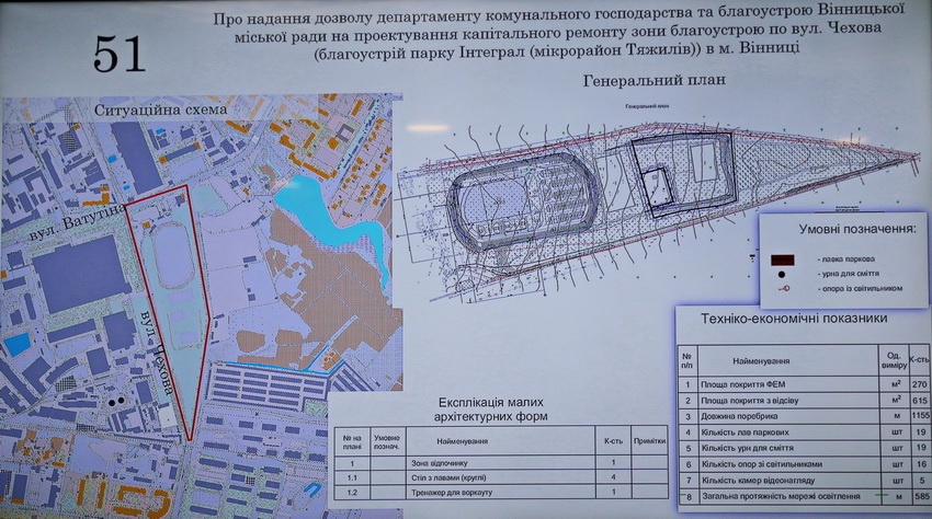 Ще 5 березня виконавчий комітет Вінницької міської ради надав дозвіл на проектування капітального ремонту зони благоустрою парку «Інтеграл», що в мікрорайоні Тяжилів - на східній околиці обласного центру. І вже 30 червня на сайті публічних закупівель Prozorro з’явився тендер, розміщений департаментом комунального господарства та благоустрою Вінницької міськради, на проведення на робіт з капітального ремонту зони благоустрою по вул. Чехова.