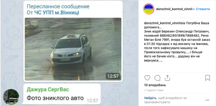 Як йдеться в дописі спільноти "Дорожній Контроль Вінниця" у соцмережі "Фейсбук", зник водій Березин Олександр Петрович, позивний 888482/651899/7888482, Рено Меган Біле 7991.
