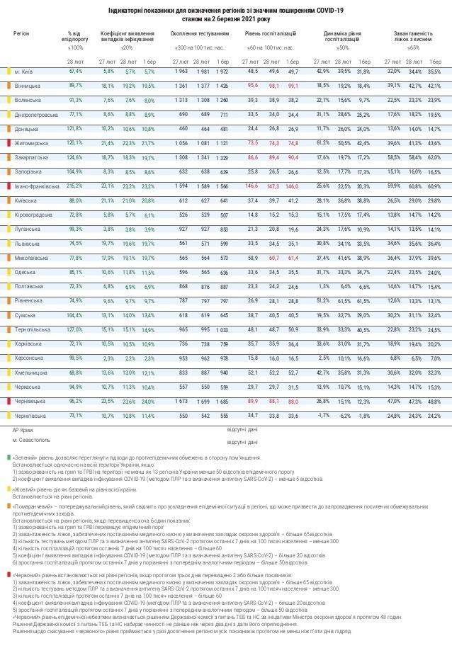 Дані Міністерства охорони здоров'я свідчать про те, що у шести областях перевищено показник госпіталізацій серед пацієнтів з коронавірусом. Найгірша ситуація, звісно, в Івано-Франківській області, де станом на 2 березня показник госпіталізацій склав 146 на 100 тисяч населення при нормі 60.